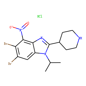 | CC(N1C(C2CCNCC2)=NC3=C([N+]([O-])=O)C(Br)=C(Br)C=C31)C.[H]Cl |