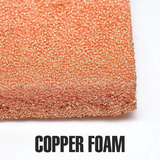 Copper foam (Cu foam) is a crystalline solid skeleton structure with a robust, extremely porous, permeable structure and a regulated foam density per unit volume. The cell and connective matrix are reproducible, regular, and consistent throughout the material. It is not crushed, coated, or plated in any way. Its purity is generally the same as that of the original alloy copper, with no holes, impurities, or impalements. Copper metal foam performs admirably in heat transfer applications. Copper Foam Sheet has been extensively applied in fabricating battery negative carrier materials, electrode substrates of lithium-ion batteries or fuels, cell-catalyst carriers, and electrical insulation materials. It is the foundation of a battery electrode, and it has several significant advantages.