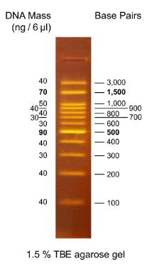 GenLadder DNA marker are available in a ready-to-use format (premixed with 6X DNA Loading Dye: M3094 (GenLadder 100 bp Plus ready-to-use) > and M3328 (GenLadder 1kbp ready-to-use) > or our ready-to-use premix M3072 (GenLadder 50bp) > with 6X Orange DNA Loading Dye.