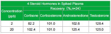 As result, under different spiked concentrations, the four compounds have good recovery.